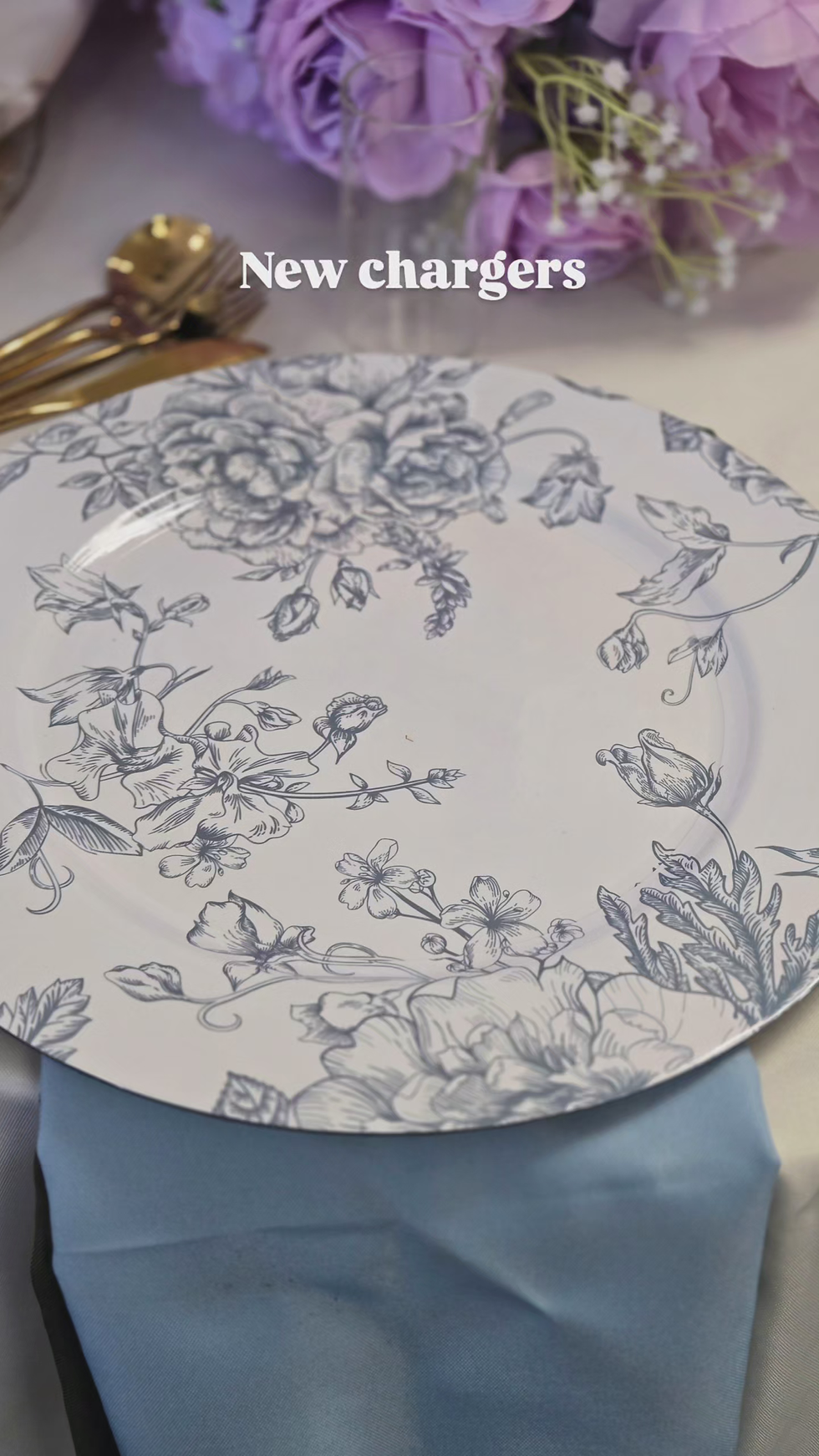 French Toile Acrylic Charger plate Blue